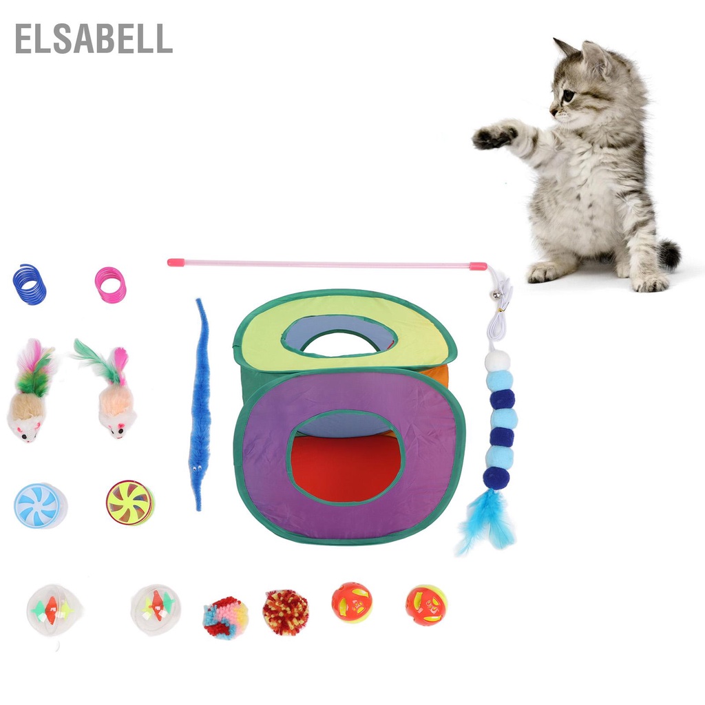 Elsabell 15 chiếc Bộ đồ chơi cho mèo Tương tác không độc hại Lều bóng chuột lò xo Funny Kitten Toy Assortment