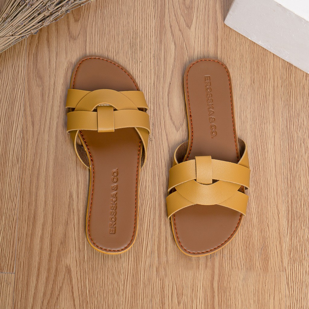 Erosska - Dép đi biển thời trang Erosska 2021 đan chéo đế bệt DE028