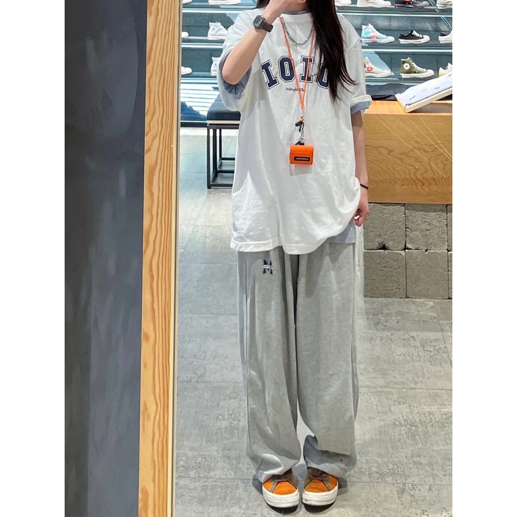 Ethelgirl Quần Thể Thao Nữ Ống Rộng Lưng Cao Thời Trang Hàn Quốc
