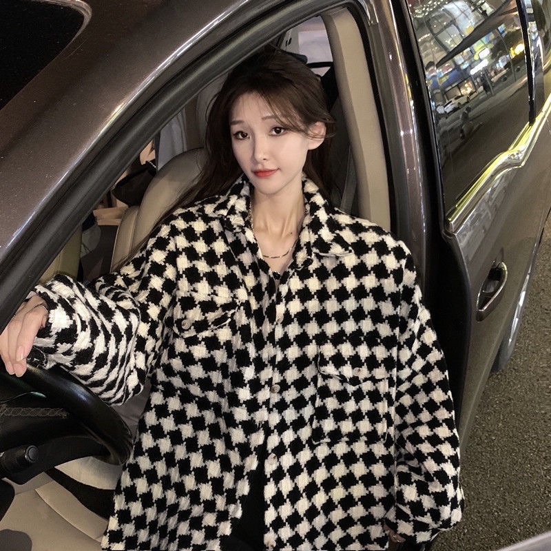 FRRESHIP-ÁO KHOÁC DẠ CHẤT CỰC DÀY DẶN KẺ ĐEN TRẮNG