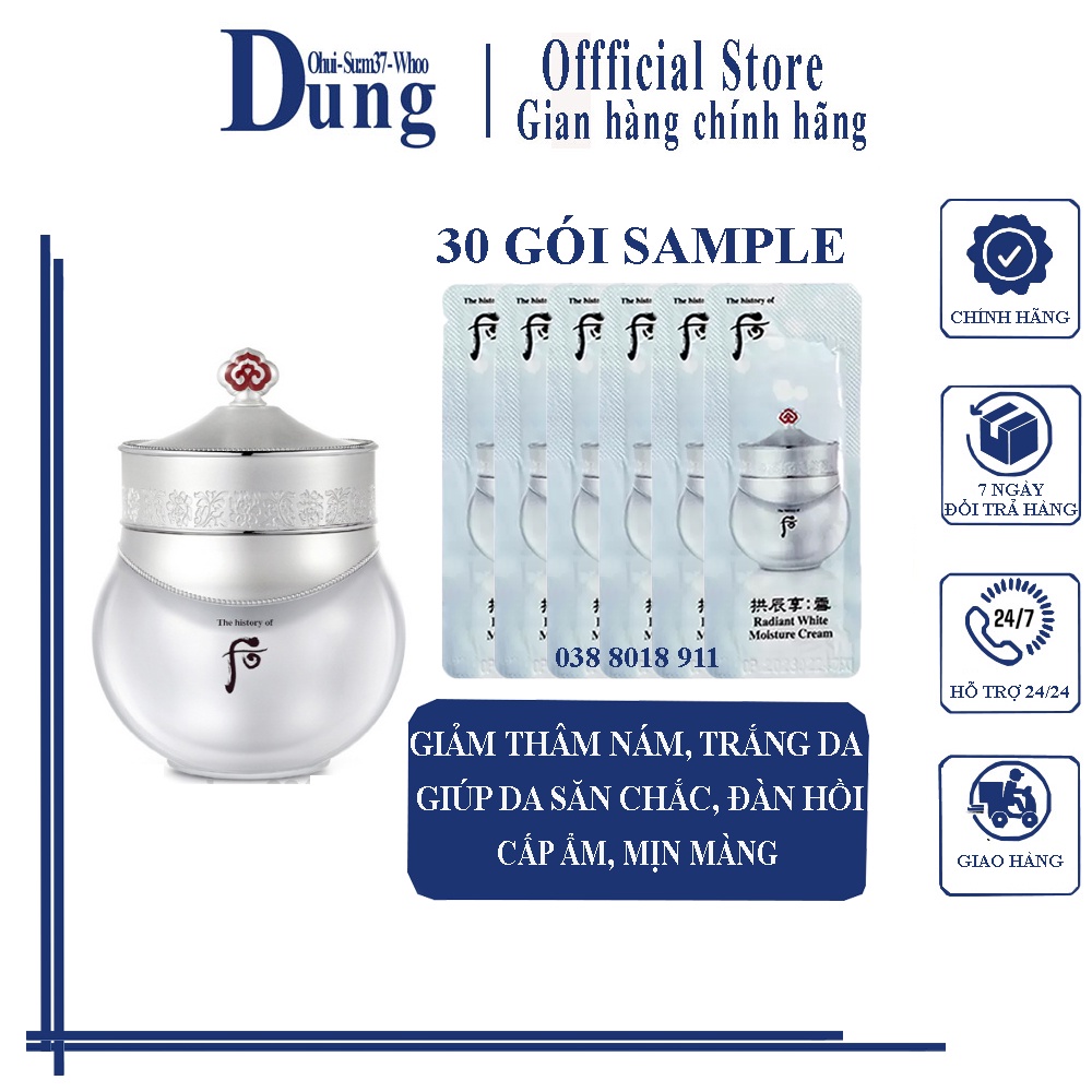Combo 30 Gói Sample Kem Dưỡng Trắng Giảm Thâm Nám Whoo Radiant White Moisture Cream 1mlx30