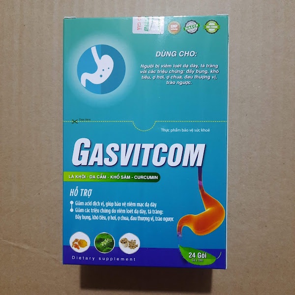 Gói uống GASVITCOM làm giảm triệu chứng viêm loét dạ dày, tá tràng và trào ngược