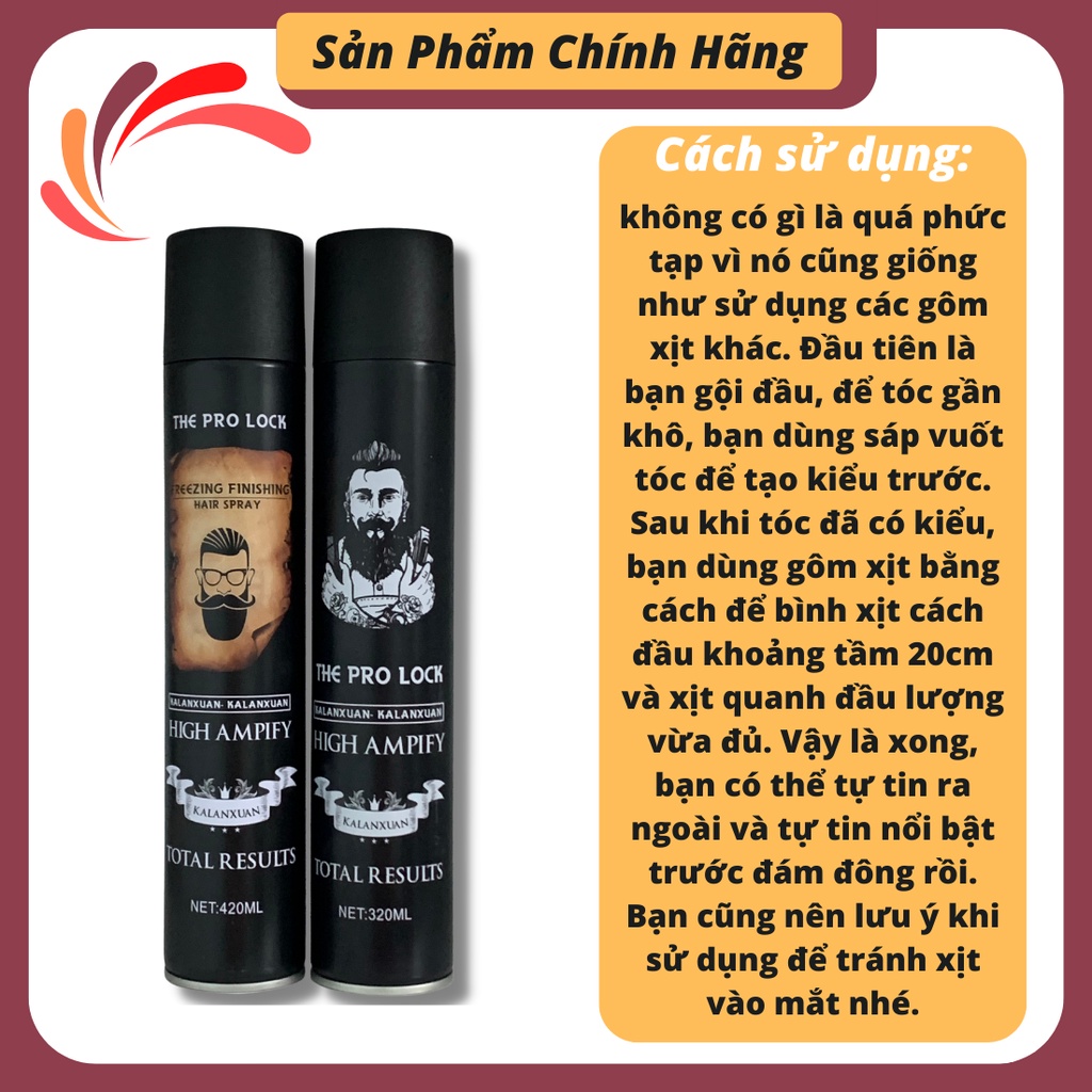 Gôm xịt tóc tạo kiểu nam nữ The Pro Lock High Ampify 420ml chuẩn salon keo xịt tóc