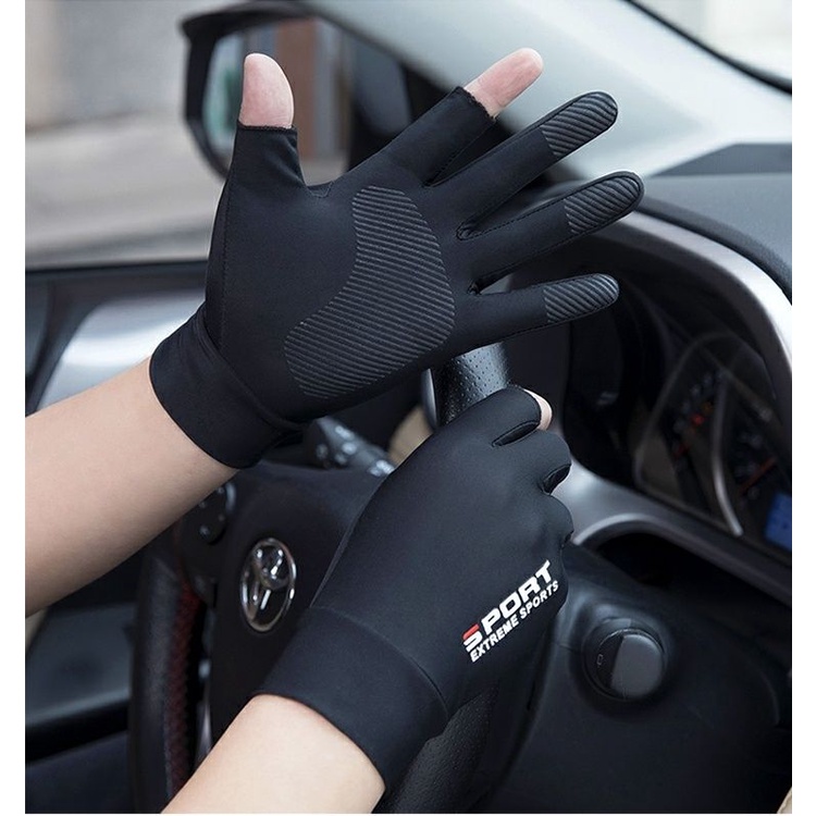 Găng Tay Chống Nắng Bằng Lụa Mát Thiết Kế Hở Ngón Tiện Dụng Cho Nam Nữ Khi Lái Xe
