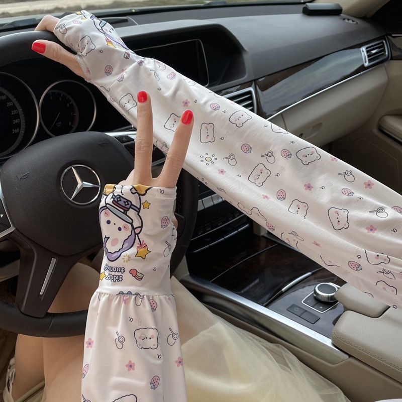 Găng Tay Chống Nắng Tia UV Vải Lụa Lạnh Dáng Rộng In Hoạt Hình Dễ Thương