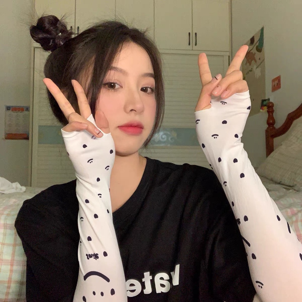 Găng Tay Chống Nắng Vải Lụa Lạnh Thoáng Khí Họa Tiết Dễ Thương Cho Nữ