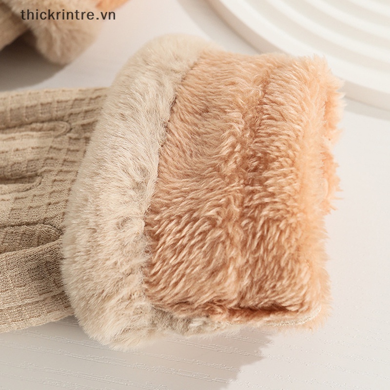 Găng Tay Giữ Ấm Mùa Đông Bằng Vải Nhung Lông Thỏ Dày Dặn Có Thể Chạm Màn Hình Cảm Ứng Dành Cho Bạn Nữ Khi Lái Xe Ngoài Trời