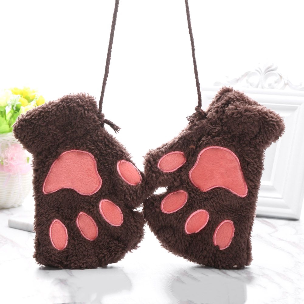 Găng tay len cashmere hở ngón giữ ấm họa tiết hoạt hình dễ thương thời trang mùa đông