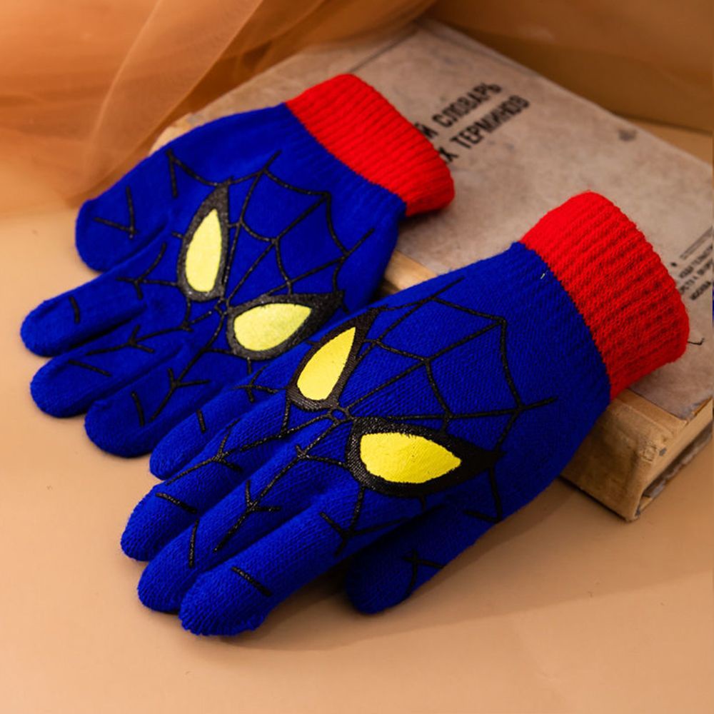 Găng tay hai lớp giữ ấm chống gió bằng acrylic mềm hình người nhện dành cho bé trai