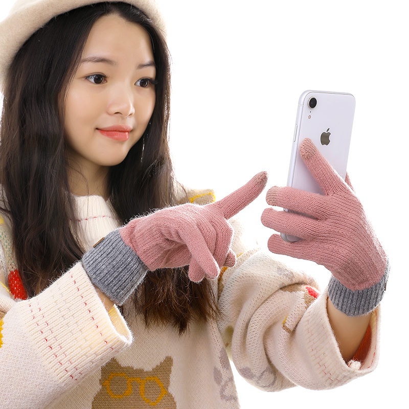Găng tay len cảm ứng chất dày 5 màu trơn / Bao tay len cảm ứng sử dụng thuận tiện khi thao tác trên điện thoại