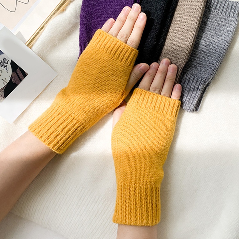 Găng Tay Bao Tay Len Hở Ngón Giữ Ấm Chống Nắng Phong Cách Đơn Giản Cho Nữ