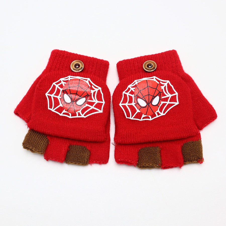 Găng Tay Len Hở Ngón Hình Người Nhện Cho Bé 5-10 Tuổi