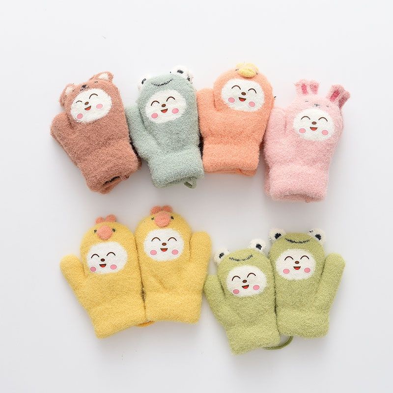 Găng tay len mềm xỏ ngón BÒ, KHỈ cho bé trai, bé gái size từ 2 đến 7 tuổi. Bao tay trẻ em cute
