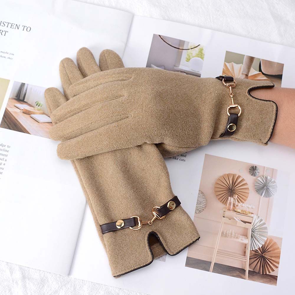 Găng tay vải nhung Đức mềm mại đàn hồi màu trơn sử dụng được màn hình cảm ứng lái xe ấm áp mùa đông dành cho nữ