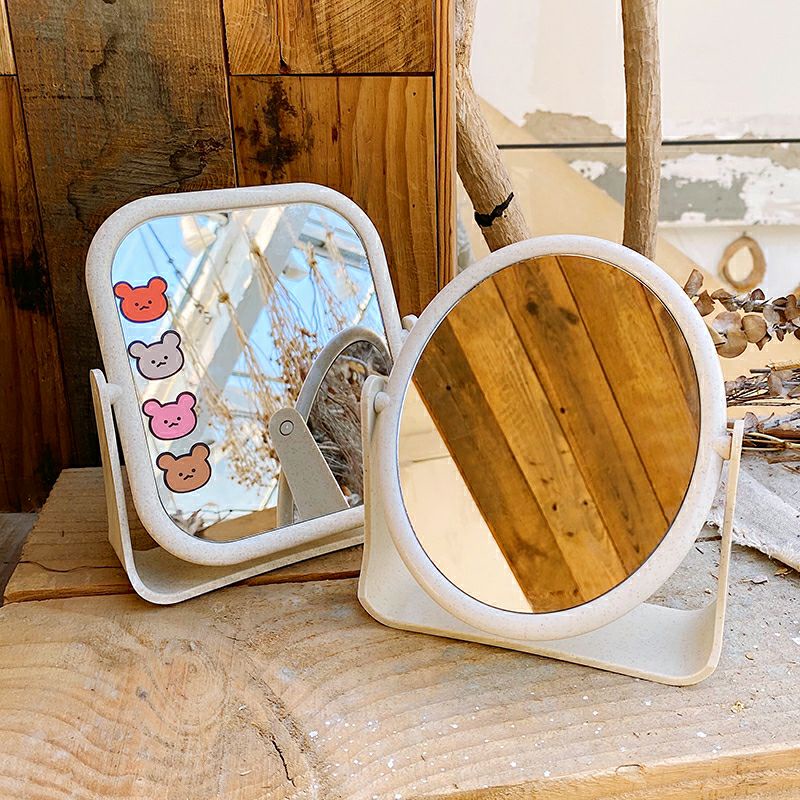 Gương để bàn trang điểm tai gấu , Kim Loại , Viền Sóng , Xương Rồng , Vịt Hàn Quốc xinh xắn dễ thương cá tính