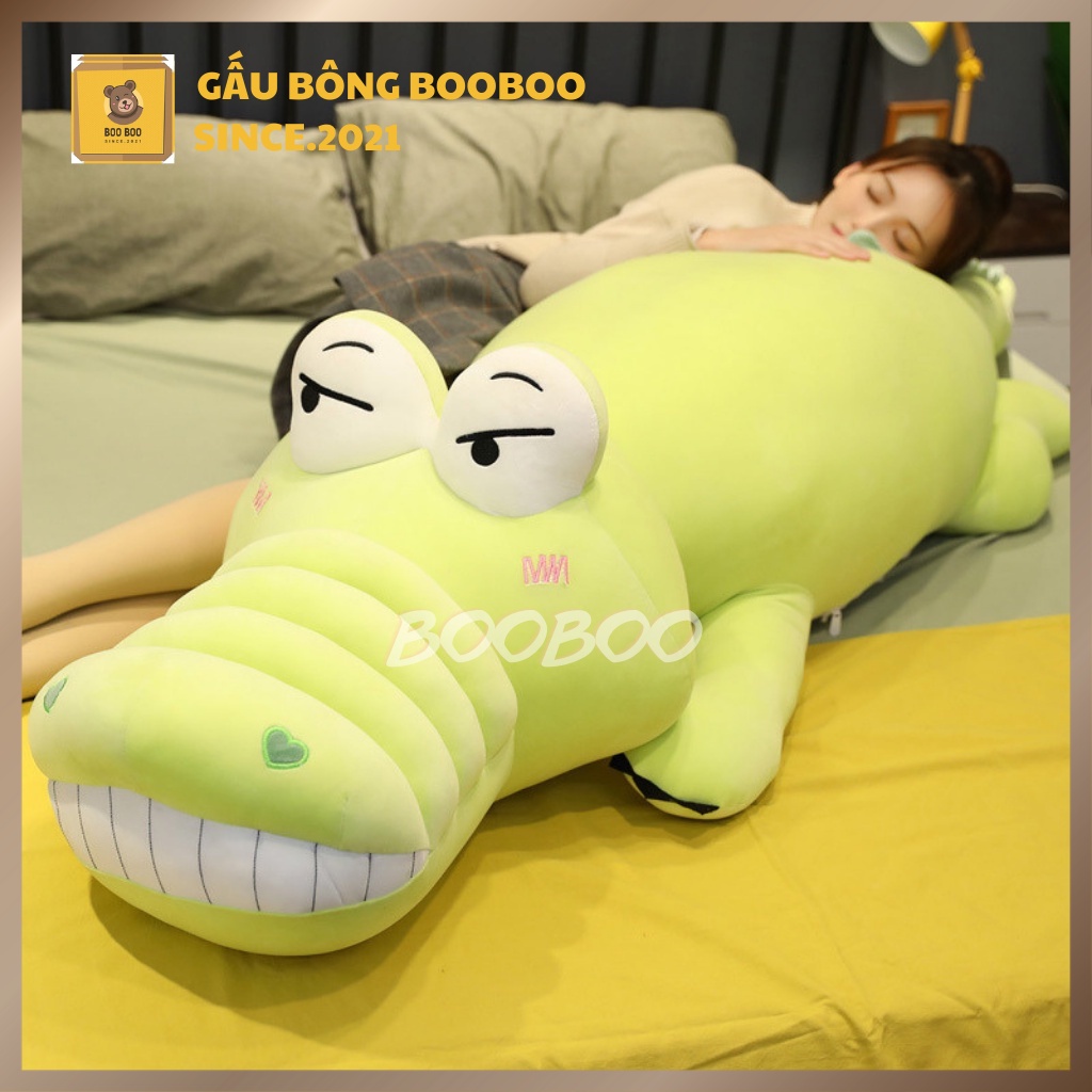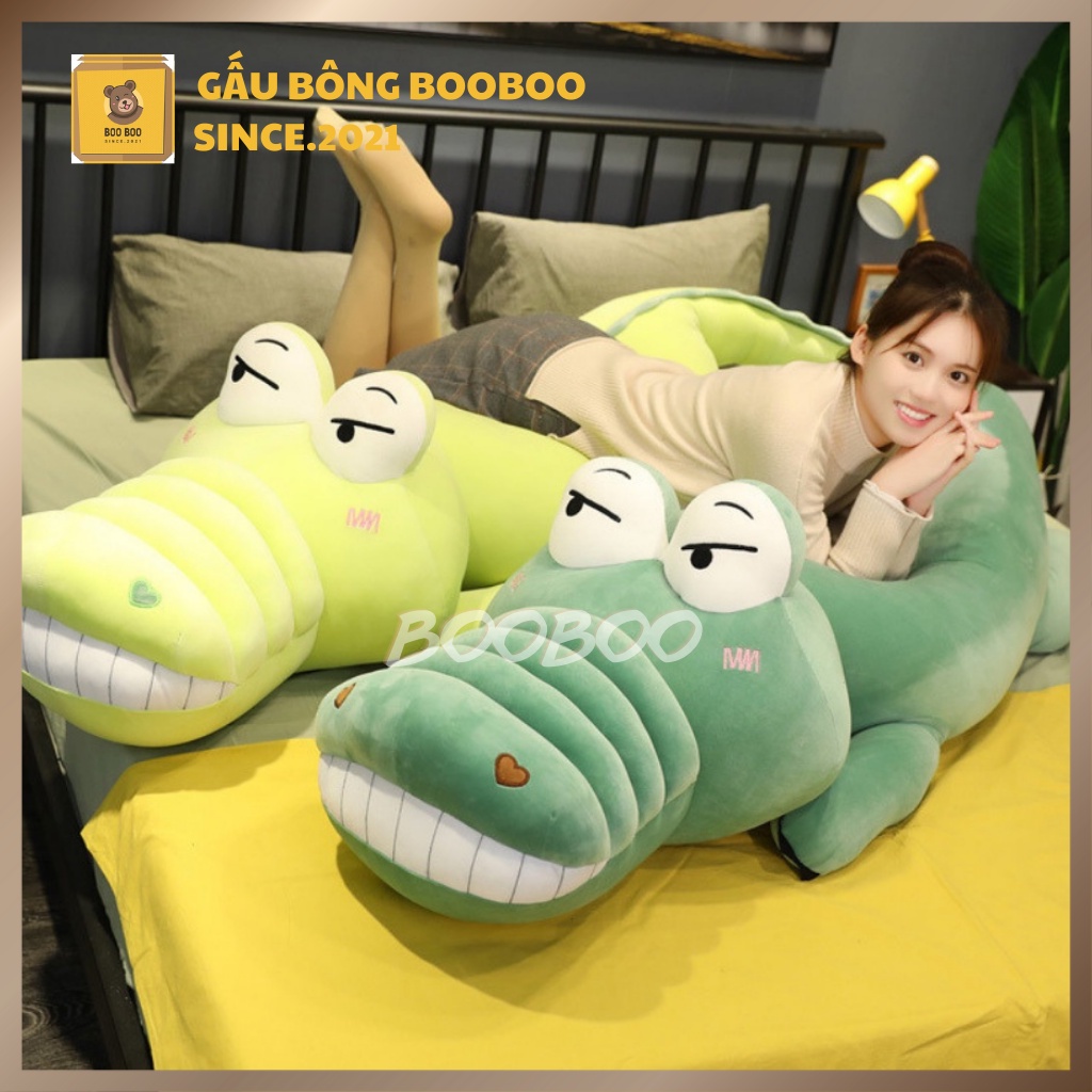 Gấu Bông Cá Sấu Mặt Ngáo, gối ôm hình thú nhồi bông cho bé Siêu To Khổng Lồ, Vải Co Giãn 4 Chiều Siêu Mềm Mịn BooBoo