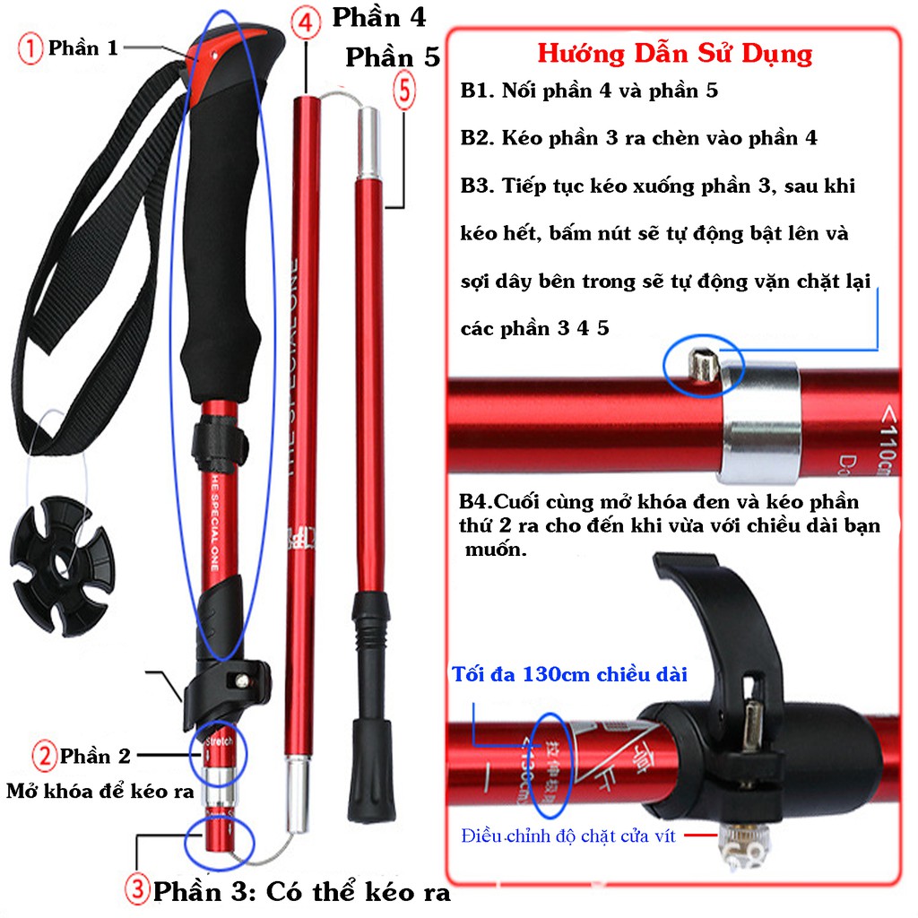 Gậy Leo Núi Gấp Gọn Chỉ Còn 30cm Đi Leo Núi Trekking Đi Phượt