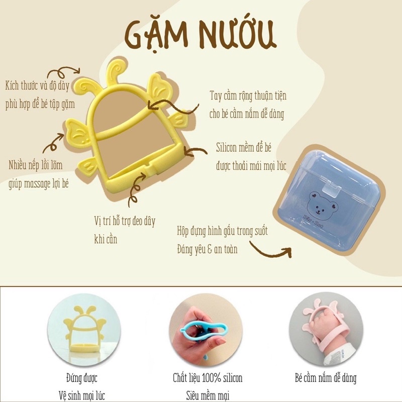 Gặm nướu cầm tay Bar Rot cho bé, tặng kèm hộp đựng |Hàng cao cấp chính hãng Bar Rot BAR – ROT ĐÃ DU NHẬP GẶM NƯỚU HOT HIT Gía cực chất – KÈM HỘP GẤU BAO XINH HÀNG KIỂM ĐỊNH ĐẦY ĐỦ THÌ CÁC MẸ BIẾT ĐỘ CHẤT LƯỢNG ĐẾN ĐÂU RỒI NHÉ 🍀 - Được làm từ chất liệu silicon cao cấp, an toàn và mềm mại 🍀 - Thiết kế quai cầm giúp bé chơi không bị rơi, đảm bảo luôn sạch sẽ 🍀 - Các chi tiết được thiết kế tỉ mỉ giúp bé được massa lợi 1 cách thoải mái nhất. GẶM NƯỚU BAR ROT SIÊU MỀM VỀ ĐỦ GAM MÀU XINH LUNG LINH Mẹ không mua là tiếc lắm nha! Gặm nướu siêu mềm, an toàn cho răng và nướu của bé. Chất liệu cao cấp, 100% silicon nên mẹ dễ dàng tiệt trùng với nước sôi hay các máy UV. ➖ Thiết kế vừa vặn với cổ tay của bé, giúp bé “ngấu nghiến nghiền ngẫm” một cách thoải mái nhất. ➖ Bắt trend thiết kế quai cầm, giúp bé tập cầm ko bị rơi, mẹ nên mua cho bé khi bé trên 2 tháng nha, gặm cái này an toàn mà bé đỡ gặm quần áo linh tinh ➖ Tặng kèm một case xịn xò đảm bảo vệ sinh khi bé không sử dụng. ✅ĐẶC ĐIỂM NỔI BẬT CỦA GẶM NƯỚU BAR ROT: - Không chất tạo mùi, không gây nguy hiểm cho bé! (100% silicone platinum, không chứa BPA, đạt chuẩn chứng nhận Hàn Quốc) - Gặm nướu BAR ROT có thiết kế hình động vật siêu ngộ nghĩnh, làm tăng khả năng cảm nhận và giác quan của bé - Thiết kế tự đứng giúp đảm bảo tính vệ sinh của sản phẩm - Độ mềm thích hợp, không làm hỏng nướu của bé - Hình dáng gặm nướu BAR ROT mềm mại, vừa vặn với cổ tay của bé - Các hình dáng khác nhau phù hợp với các bộ phận khác nhau trên cơ thể, gặm nướu BAR ROT sẽ giúp cho bé có thể sử dụng thoải mái nhất - Gặm nướu BAR ROT với chất liệu cao nên có thể tiệt trùng bằng các cách khác nhau (Nước nóng, máy rửa bát, lò vi sóng, máy UV) - Đi kèm một hộp đựng đảm bảo vệ sinh khi không sử dụng ✅THÔNG TIN CHI TIẾT CỦA SẢN PHẨM: ▪ Chất liệu: Gặm nướu-Silicone (250℃ ~ -40℃) Case-PP (100℃ ~ -20℃) ▪ Nơi sản xuất: Trung Quốc ▪ Độ tuổi khuyên dùng: 3 tháng tuổi+ (Cua, gấu) / 6 tháng tuổi+ (Ếch) #gặm_nướu_cho_bé #đồ_chơi_gặm_nướu_cho_bé #bộ_gặm_nướu_cho_bé #gặm_nướu_silicon #gặm_nướu_cho_bé_ BARROT_hàn_quốc #nướu_gặm