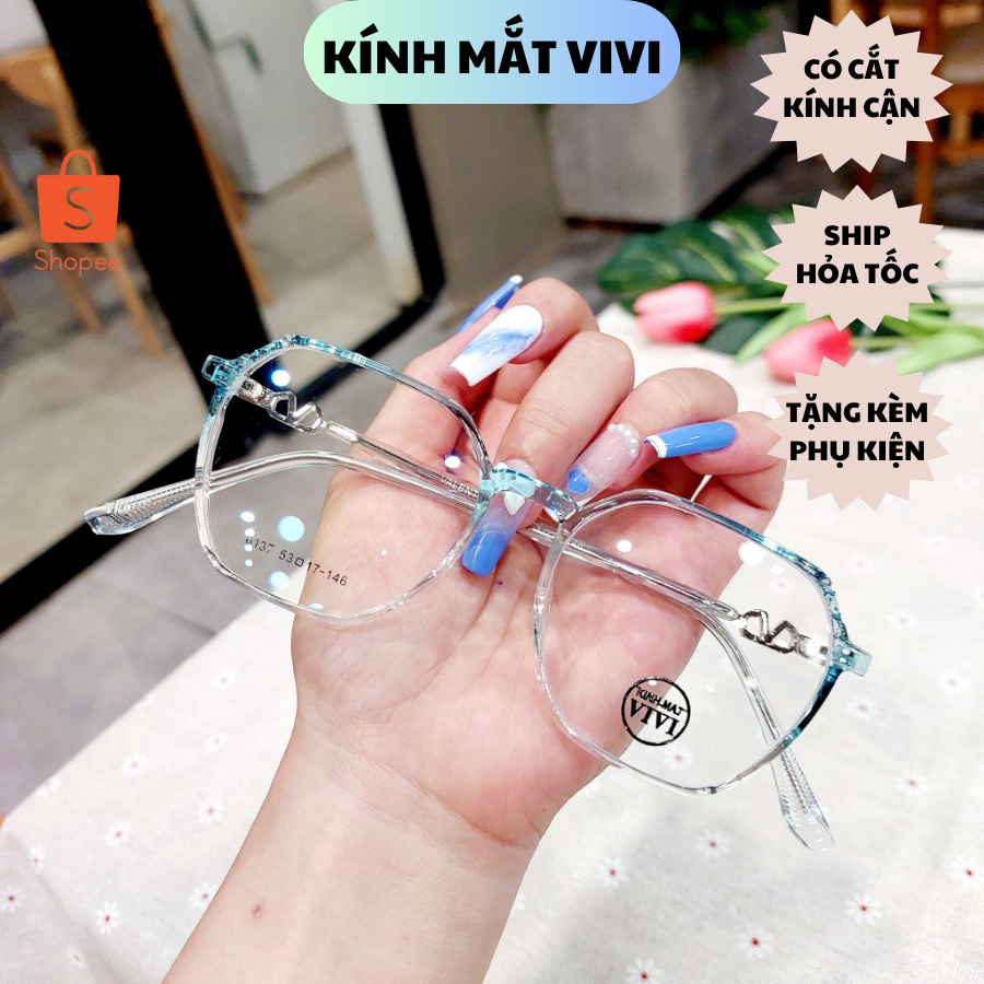 Kính mát nữ giả cận nữ gọng nhựa nam nữ đa giác vuông kim loại trong suốt - Bự Store - 483