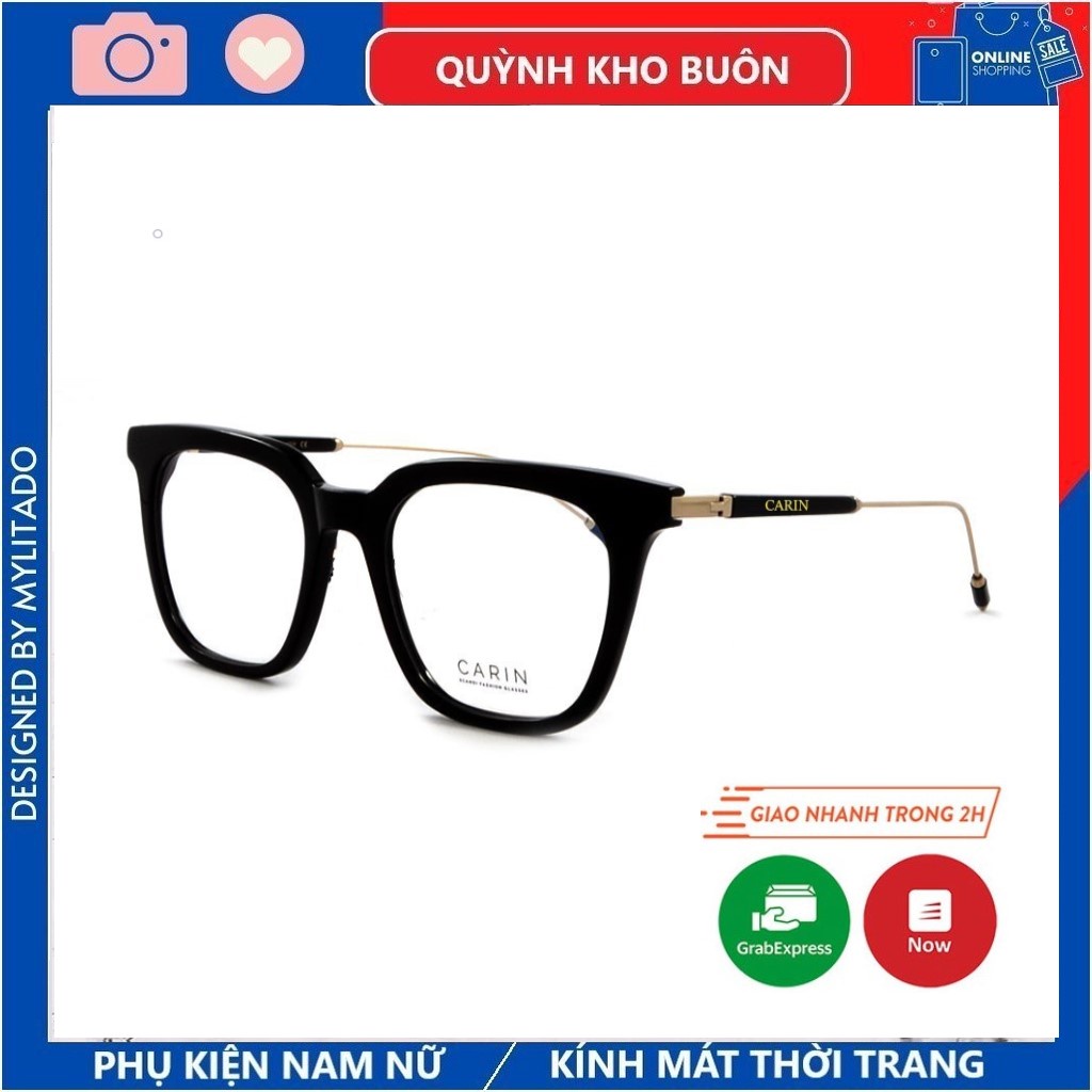 Gọng kính cận kim loại Hàng Hiệu CARIN , mắt gọng vuông màu sắc thời trang 9028