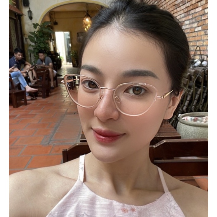 Kính không độ nữ mắt mèo gọng kim loại loại 1 nhiều màu gọng mảnh thanh lịch KTT21