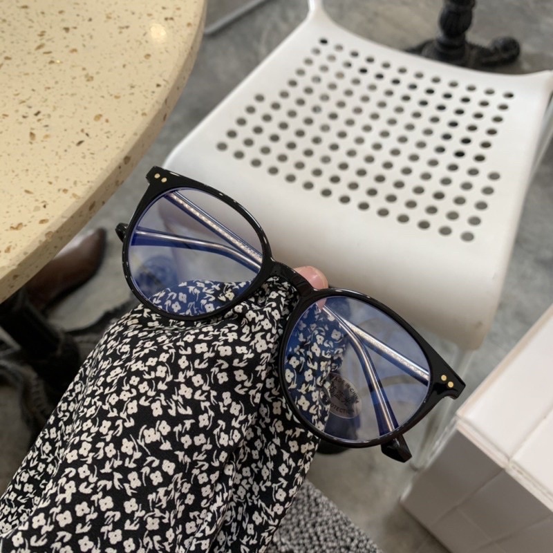 Gọng Kính Cận, Kính Giả Cận Nam Nữ Mắt Tròn Form Nhỏ Gọng Nhựa Full Đen Chống Ánh Sáng Xanh Không Độ