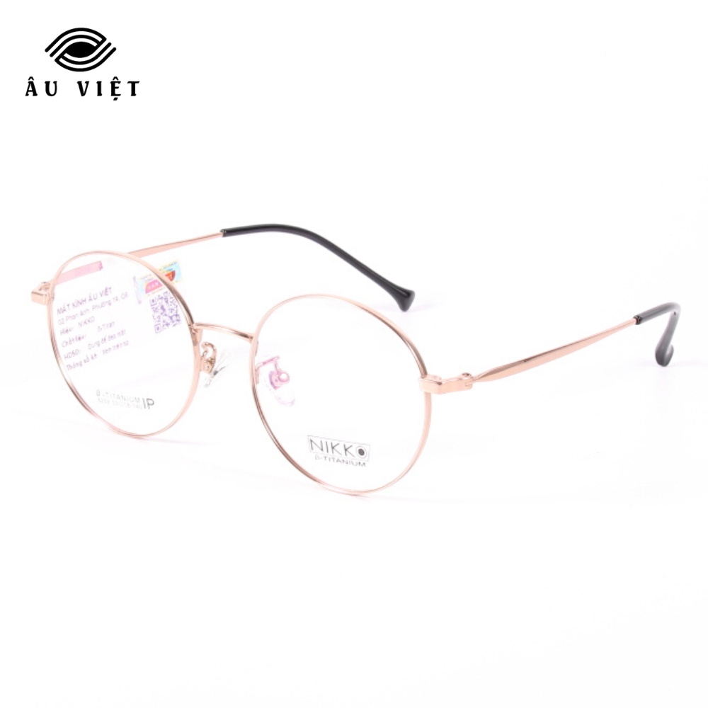 Gọng kính titanium Nikko 8208 nam nữ unisex dáng tròn màu bạc/vàng hồng/đen Full box cao cấp