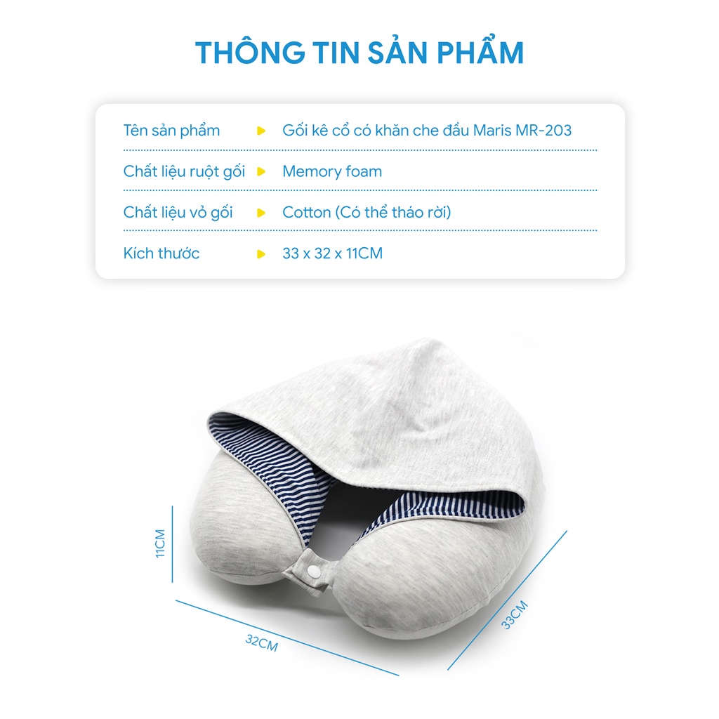 Gối Chữ U Cao Su Non MARIS Mr - 203 Memory Foam Cao Cấp Size 33 x 32 x 11 Cm, Gối Kê Cổ Có Mũ Bạn đang tìm kiếm sự tiện lợi và thoải mái cho cả hành trình và thời gian làm việc? Gối Chữ U Cao Su Non MARIS Mr - 203, sản phẩm của thương hiệu Maris, sẽ là người bạn đồn