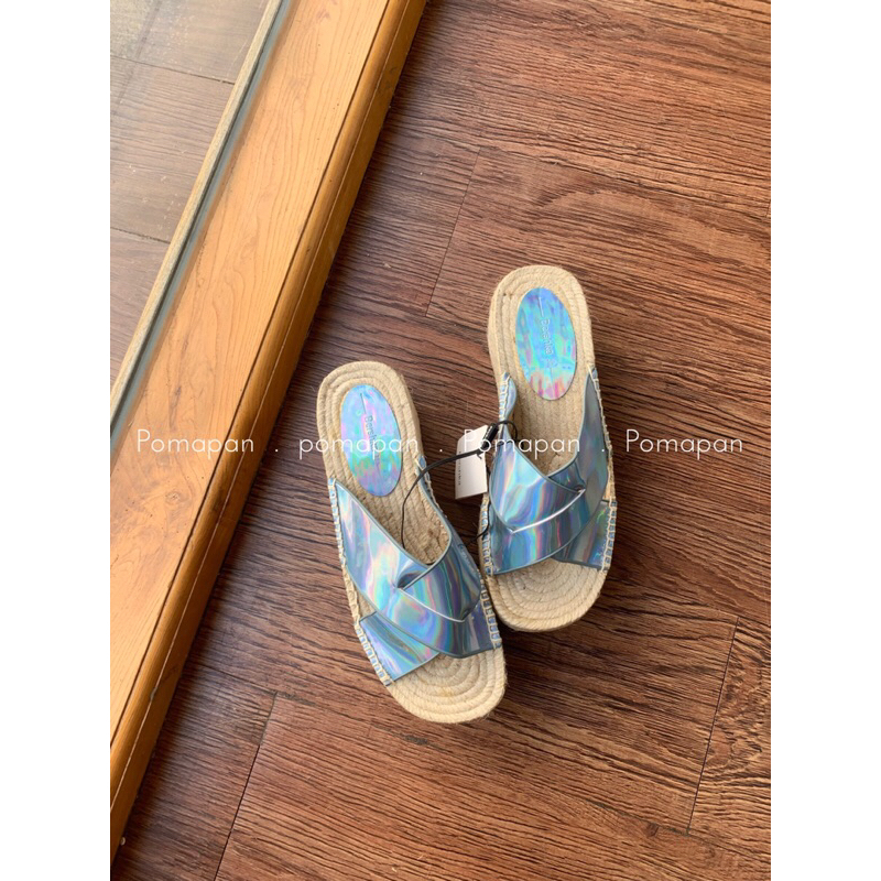 Dép xuồng Bershka - Size 35-36-37-38-39-40 - Đế cao 7cm chất liệu cối, quai chéo bản to hologram ánh cầu vồng siêu xinh - Em này đi chơi đi du lịch mix đồ ko sợ bị đau chân mà lên dáng vẫn đẹp. Hàng xịn chắc chắn lắm ạ 😍 __________________ 🌵b112/5 bạch đằng ,p2 ,Tâ