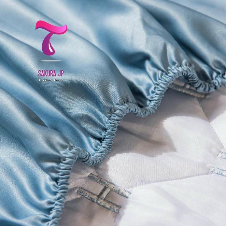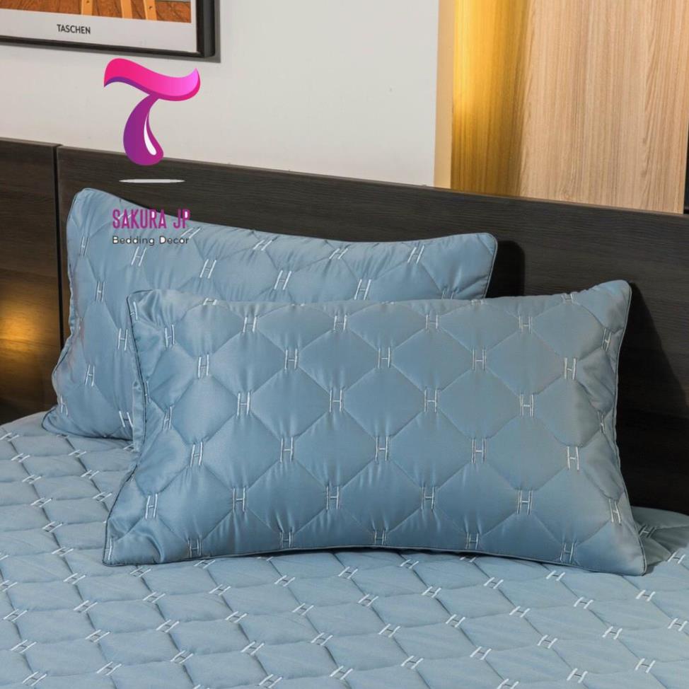 Ga Gối Trần Bông Bọc Chun Lụa Sateens Cao Cấp Herrmess Xanh Sky Ga Gối Lụa Cotton Chần Bông Sakura JP