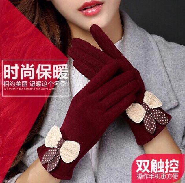Găng tay nữ cảm ứng lót nỉ siêu ấm mùa đông- gang tay nu cam ung lot ni am mua dong