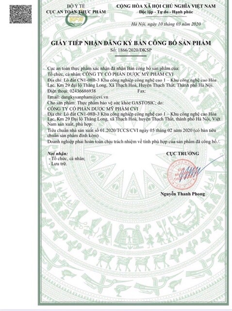 1. Công dụng - Gastosic giúp hỗ trợ chức năng đường tiêu hoá - Giúp giảm trào ngược dạ dày thực quản, giảm viêm loét niêm mạc dạ dày – tá tràng - Giảm các triệu chứng ợ hơi, ợ chua, đau nóng rát vùng thượng vị do thừa acid dịch vị 2. Thành phần - CurmaNano (Viện hàn l