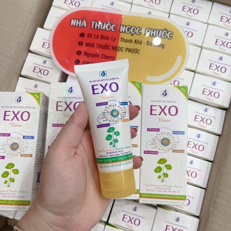 Gel rửa mặt ngừa mụn dưỡng ẩm, sữa rửa mặt Exo Nano chiết xuất Nano Curcumin từ Nghệ giúp làm sáng da hiệu quả Gel rửa mặt Exo Nano được khuyến cáo sử dụng hàng ngày với chiết xuất hoàn toàn từ tự nhiên, thành phần Nano Curcumin chiết xuất từ củ Nghệ tươi giúp hỗ trợ