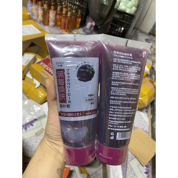 Gel Tẩy Tế Bào Chết Toàn Thân Mâm Xôi Đen GinBi 200ml | Chiết Xuất Mâm Xôi Đen Dưỡng Trắng Da An Toàn, Hiệu Quả
