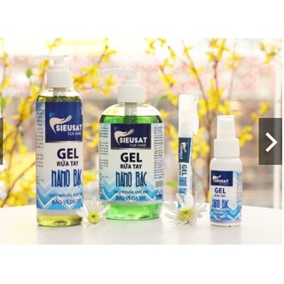 Gel xịt rửa tay khô Nano bạc Sieusat for Hand 500ml THÀNH PHẦN:Ethanol, Purified Water, Colloidal sliver, Glycerin, Carbomer 940, Triethanolamine, Perfume, Disodium EDTA, C.I. 42090. CÔNG DỤNG:Gel rửa tay sát khuẩn "Sieusat for hand" có chứa ethanol, nano bạc giúp s
