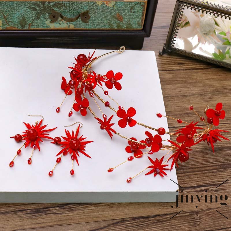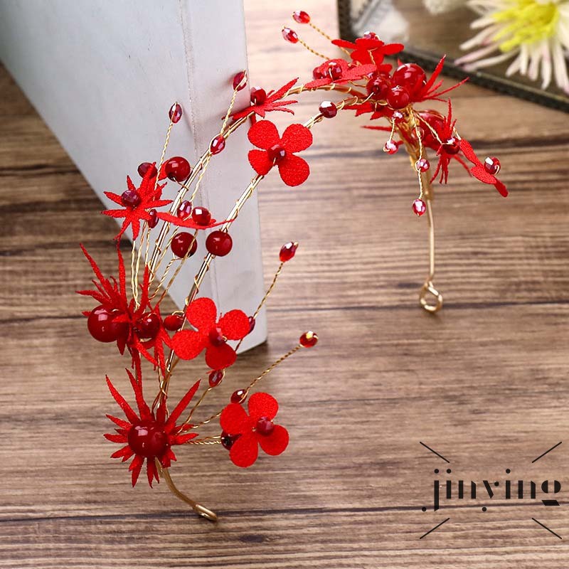 GETNOIVAS Cài tóc vòng hoa đỏ phụ kiện ngày cưới cho cô dâu