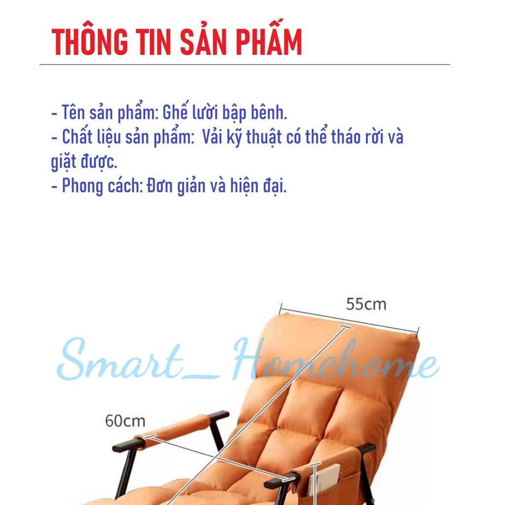 Giới Thiệu Sản Phẩm : RE0730 Ghế bập bênh-ghế sofa tựa cho người lớn, để ban công tại nhà, ghế lười phòng khách phòng ngủ smart_homehome Xuất xứ: Trung Quốc Mô hình: Ghế lười bập bênh Chất liệu khung: Thép Mô hình: Nghệ thuật Phong cách: Nordic Các yếu tố phổ biến: Thiết kế tổng thể Tổng trọng lượng: 12kg Nó có thể được tùy chỉnh: Không Đối tượng áp dụng: Người lớn Có lắp ráp không: có Định vị phong cách: Phong cách nghệ thuật Thời gian bảo hành: 12 tháng Vệ sinh: Dễ dàng lau bằng khăn ướt vệ sinh sạch sẽ k tốn thời gian giặt 👉 Chất liệu : Khung thép, Đệm da êm ái, mát ,ống thép tĩnh điện chống hao mòn, chịu trọng tải cao. 👉 Có thể điều chỉnh đến 5 chế độ từ ngồi thẳng cho đến các góc nghiêng, Khung thân bằng thép vô cùng chắc chắn, 👉 Ghế bập bênh phù hợp với nhiều mục đích, không gian khác nhau của khách hàng: nghỉ trưa, đọc báo, thư giãn ... ️ ️ 👉 Phù hợp với nhiều đối tượng sử dụng. ️👉 Sở hữu thiết kế riêng với phần lưng cao nâng đỡ cho phần tựa đầu giúp người ngồi thoải mái trong thời gian dài. 👉 Đa dạng màu sắc để bạn lựa chọn phù hợp sở thích : Xanh , Vàng Cam, Xám 👉 Khả năng chịu tải trọng lớn tới 250kg. Khả năng bập bênh nhưng vẫn giữ được lực cân bằng vô cùng an toàn .