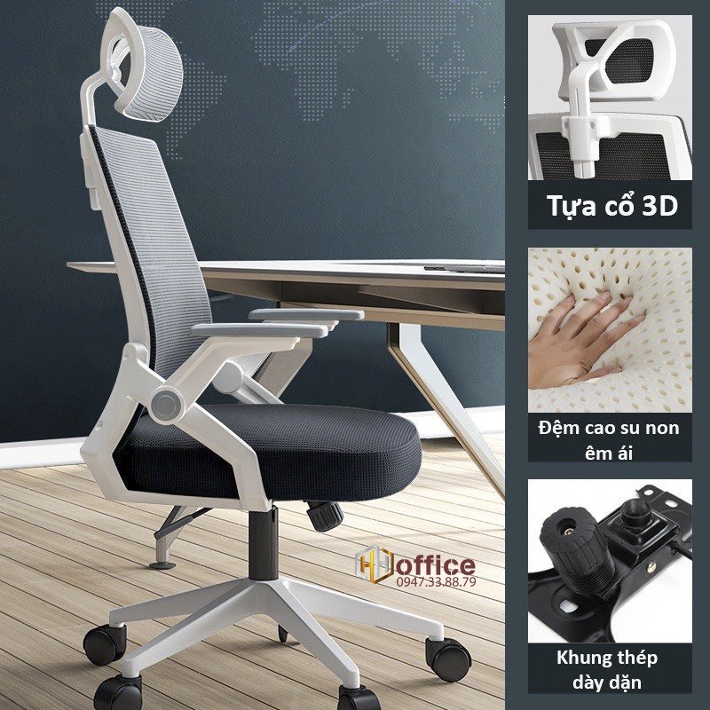 Ghế Văn Phòng cao cấp siêu tiện ích xoay 360 độ- Thiết kế kiểu dáng Công Thái Học Đệm cao su - Lưng tựa lưới thoáng