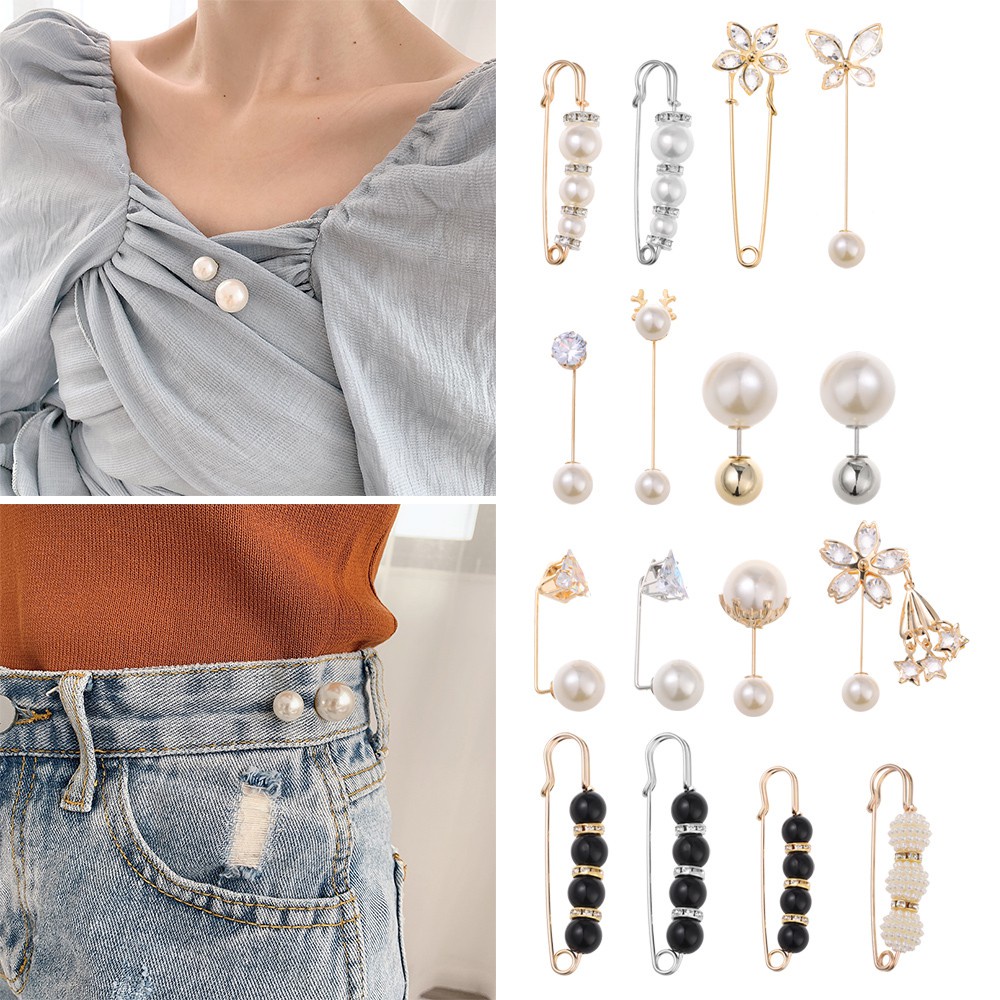 Ghim Cài Cổ Áo Cố Định Chống Ánh Sáng Đính Ngọc Trai Dành Cho Bạn Nữ
