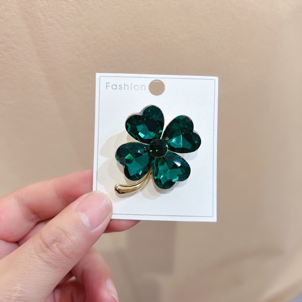 Ghim Cài Áo Hình Cỏ Bốn Lá Đính Pha Lê Sáng Bóng Thời Trang Hàn Quốc Dành Cho Bạn Nữ