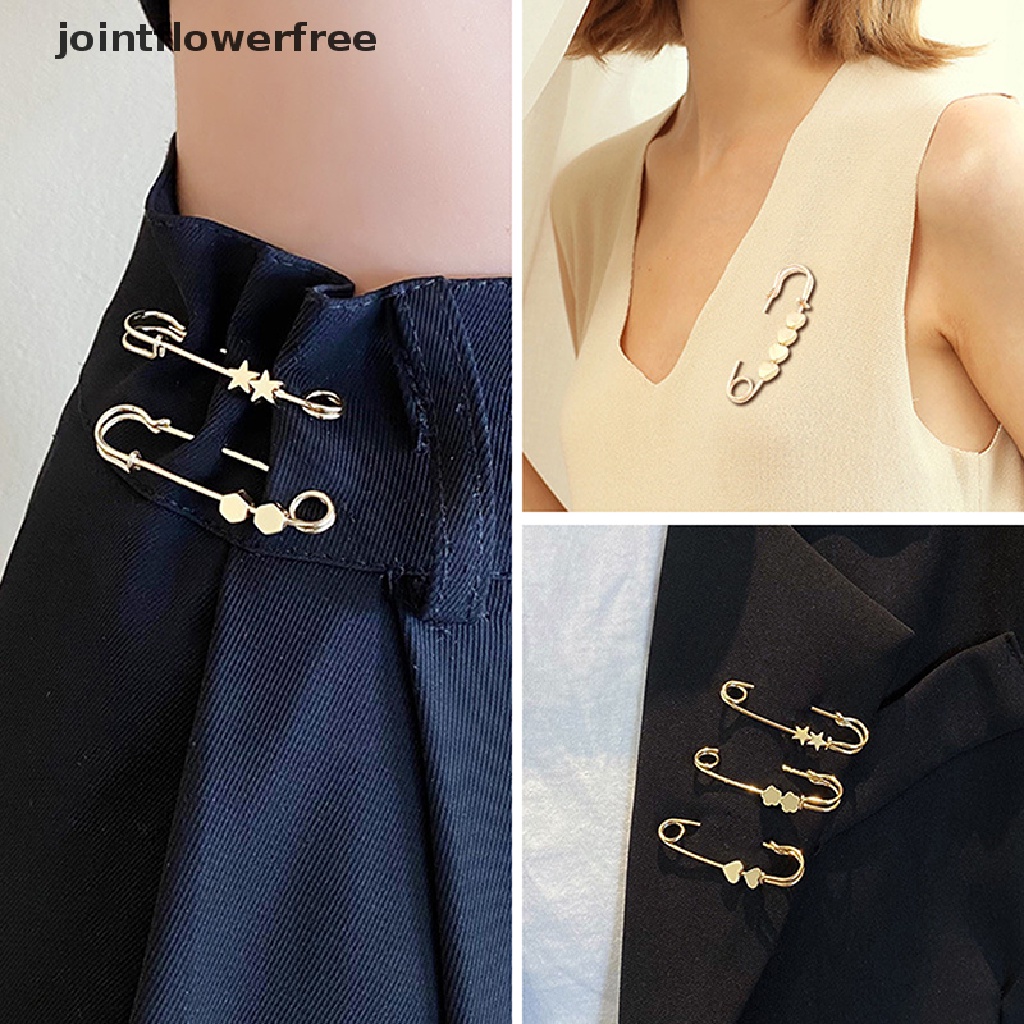 Ghim cài áo thu gọn lưng quần trang trí ngôi sao/ trái tim/ hạt vuông/ hạt tròn màu vàng điều chỉnh được thời trang