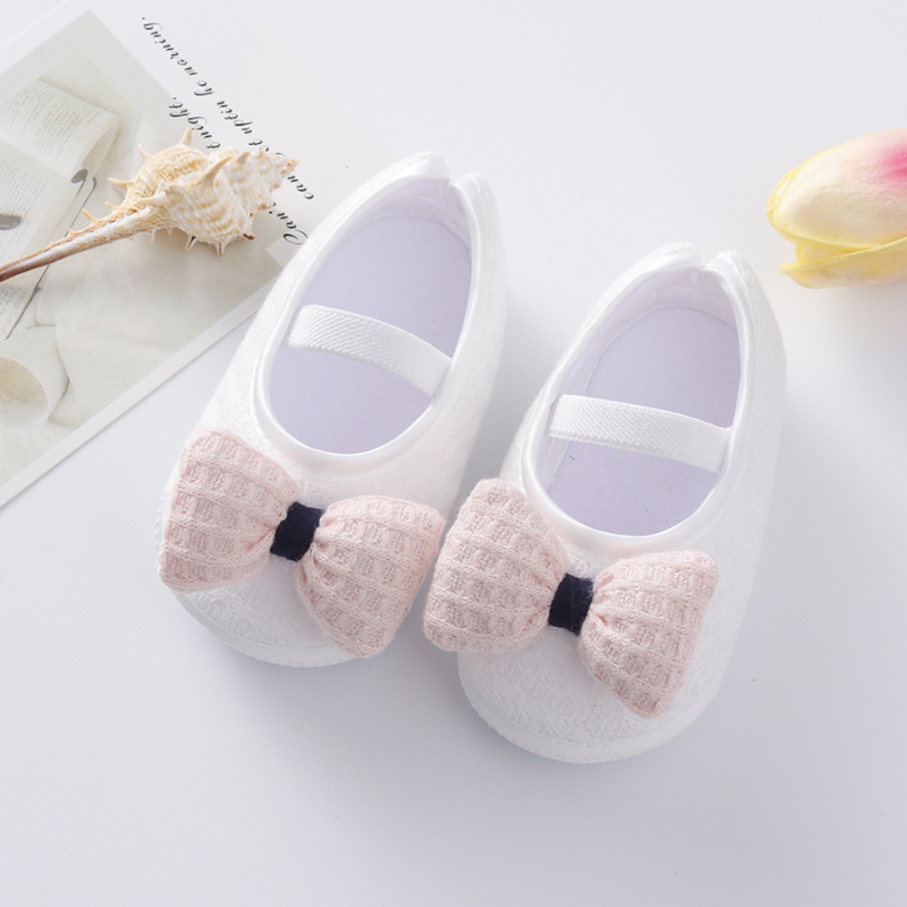 Giày Búp Bê Đế Mềm Chống Trượt Đính Nơ Xinh Xắn Cho Bé Gái 0-12 Tháng Tuổi