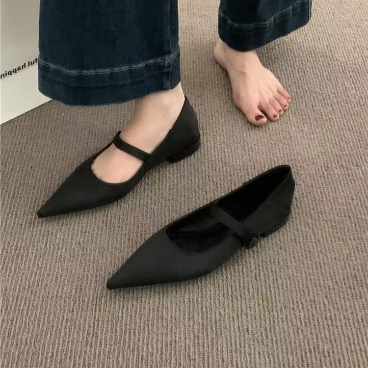 Giày Búp Bê Vải Satin Mũi Nhọn Đế Bệt Thời Trang Công Sở Thanh Lịch Cho Nữ