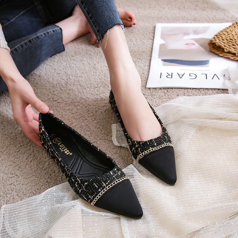 Giày bệt búp bê nữ phối dạ mũi nhọn kiểu dáng đơn giản da mềm êm chân - B28