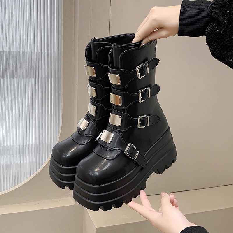 GUDETU❤Giày Bốt Cao Gót Đế Dày Dài Đến Đầu Gối Phong Cách Gothic Âu Mỹ