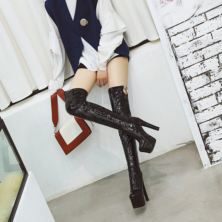 Giày bốt cao gót bằng da bóng cổ cao thời trang thu đông size lớn 33-48 năm 2022 cho nữ