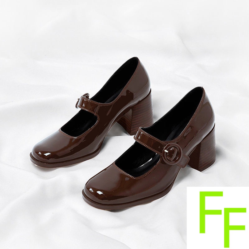 Giày Bốt Nữ Cổ Lửng Kéo Khóa Sau Chất Da Lì Gót Vuông Cao 5cm Cực Tôn Dáng
