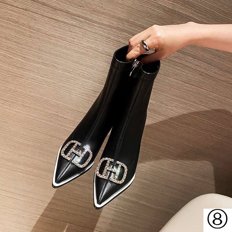 Giày Bốt Cao Gót Mũi Nhọn Đính Đá Thời Trang Âu Mỹ Sành Điệu Cho Nữ