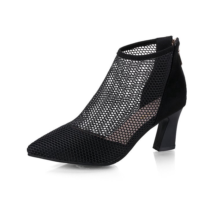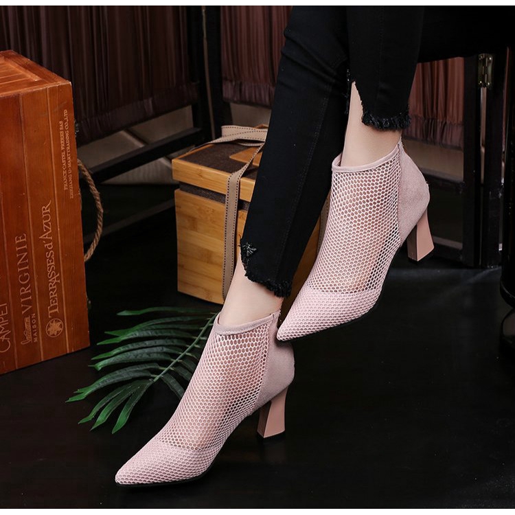 Giày bốt cao gót mũi nhọn phối lưới thời trang dành cho nữ