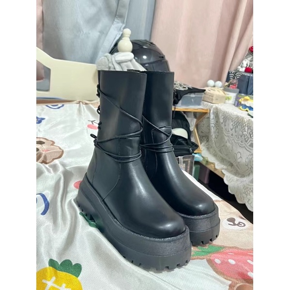 Giày Bốt Da Đế Dày Phối Dây Cột Cá Tính Có Khoá - B99